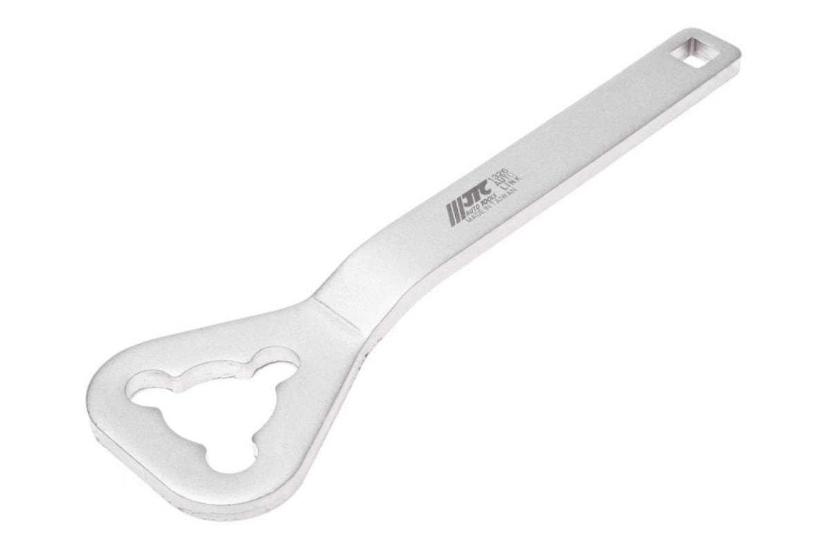 Ключ для фиксации шкива водяного насоса VW,AUDI JTC 1326 используется совместно с ручными съемно-демонтажными инструментами, например с воротком или трещоткой, имеющими квадрат присоединения 1/2 дюйма. Инструмент изготовлен из высокопрочной стали, что является гарантией его продолжительного срока службы. Может использоваться как профессиональными автомеханиками, так и простыми автолюбителями.