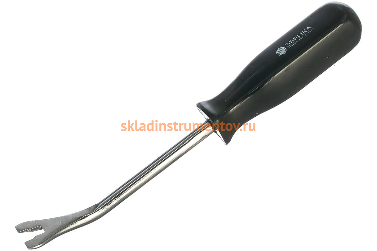 Стальной съемник пистонов, с пластиковой рукояткой ЭВРИКА ER-83036 представляет собой специализированный инструмент, который без повреждений снять обшивку с автомобиля.