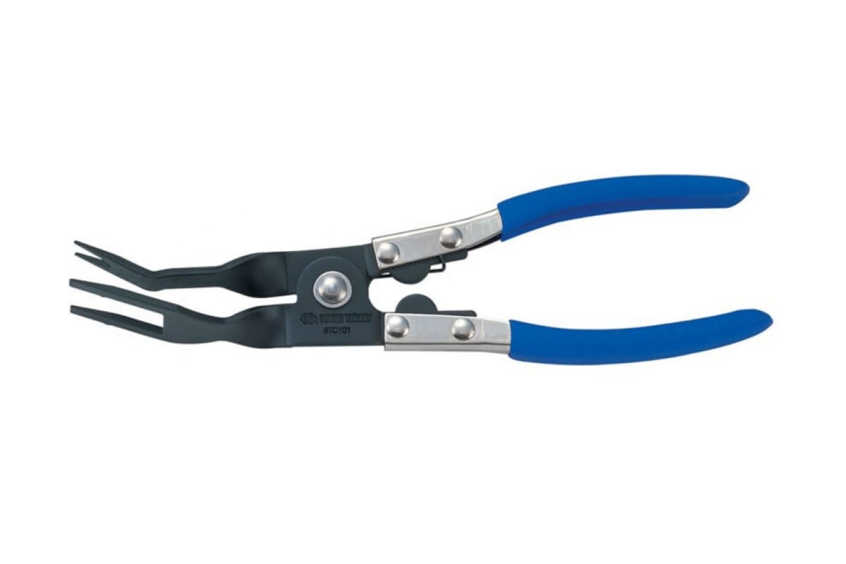 Щипцы для снятия пластикового крепежа 230 мм KING TONY 9TC101 широко применяются в ходе ремонта автомобильного салона. Специализированная форма инструмента существенно экономит время на демонтаж небольших деталей из пластика. Элементы щипцов соединены заклепками, что гарантирует конструкции долгий срок службы.