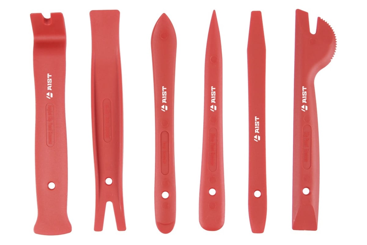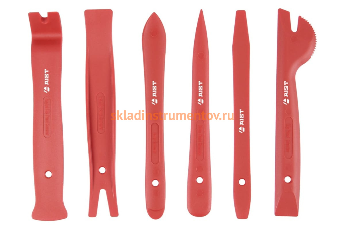 Набор лопаток для демонтажа заклепок и различных элементов с внутренней обшивки автомобиля 6шт AIST 00-00013499 - комплект специальных монтажных инструментов для снятия заклепок с обшивки автомобильных дверей. Также изделия подходят для демонтажа деревянных и пластиковых элементов с дверных и приборных панелей внутри салона.