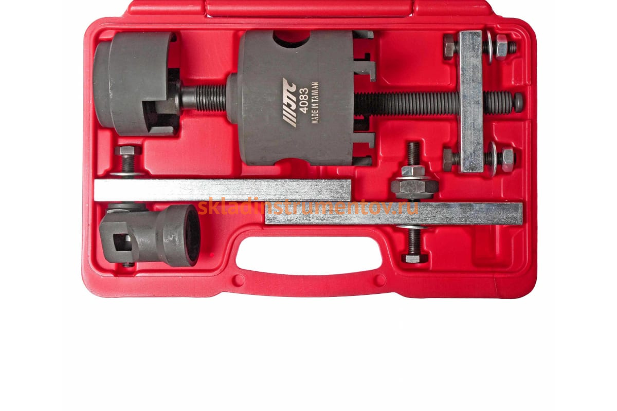 Приспособление для снятия и установки муфты 7-скоростной коробки передач (DSG VW, AUDI) JTC 4083 используется как профессионалами автосервиса, так и простыми автолюбителями. С помощью данного инструмента можно быстро и аккуратно осуществить демонтаж нижних шлицев ступицы для дальнейшей замены муфты. Инструменты надежно зафиксированы в индивидуальных ложементах, что обеспечивает удобство во время их транспортировки.