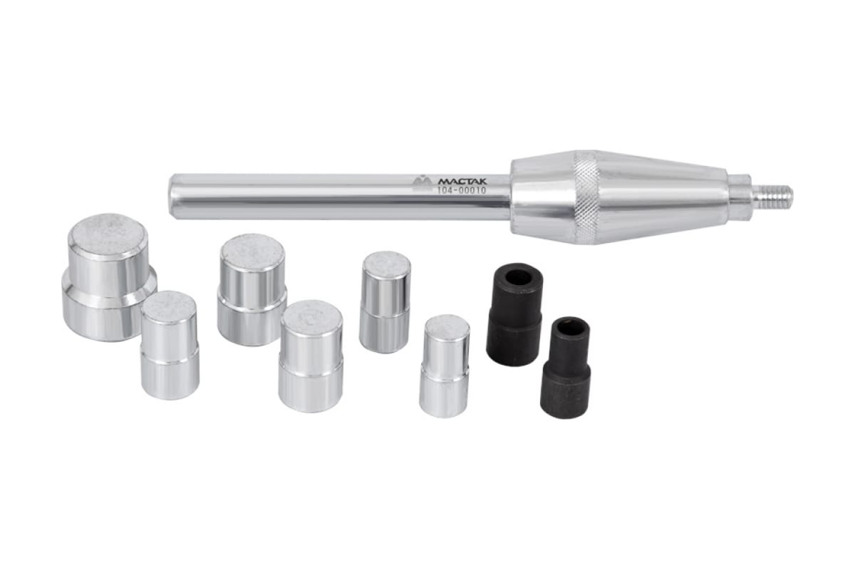 Набор оправок для установки сцепления, 10 предметов МАСТАК 104-00010 исключительно прост в использовании, поэтому с его эксплуатацией справится не только опытный, но и начинающий автомеханик. Большой комплект поставки делает данный набор подходящим для большинства марок автомобилей.