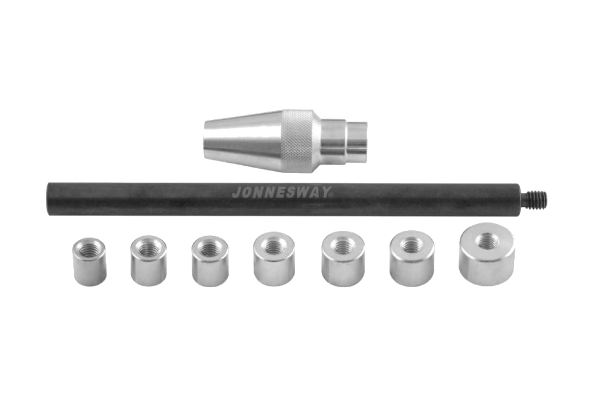 Универсальный инструмент для центровки ведомого диска сцепления Jonnesway AN010011 используется в автомобильных ремонтных работах для быстрой и легкой замены сцепления. Инструмент точно выравнивает диски сцепления и направляющие подшипники. Валы и втулки точно соответствуют восьми размерам направляющих подшипников.