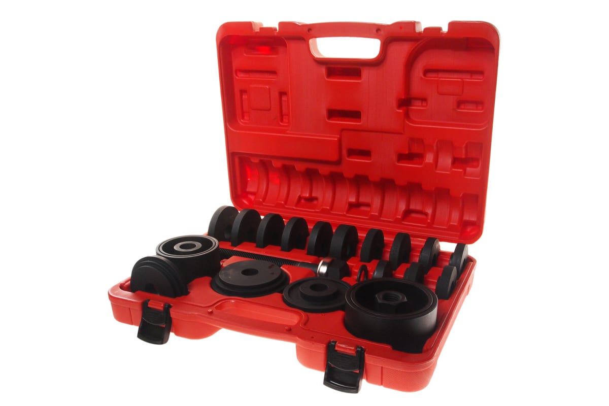 Набор съемников подшипников передних ступиц 25шт JTC JTC-1001A служит для проведения корректного процесса монтажа и демонтажа подшипников на большинстве марок и моделей автомобилей без необходимости снятия кулака и стойки подвески. Подходит для совместной работы с гидравлическим приводом (арт. JTC-4885).
