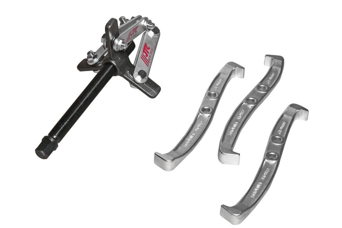 Трехзахватный съемник подшипников 12", захват 120-305 мм JTC 351412 широко распространен на станциях технического обслуживания. Предназначен для быстрого снятия подшипников, имеющих диаметр колец от 120 до 305 мм. Корпус изготовлен методом кованой штамповки из хром-ванадиевой стали, которая способна выдерживать высокие нагрузки. Габаритные размеры: 410х250х225 мм.