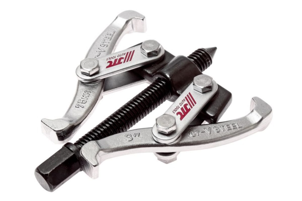 2-х лапый съемник подшипников (40-76 мм) JTC 35133 небольших габаритов не вызывает неудобств при транспортировке. Хром-ванадиевая сталь придает приспособлению жесткость. Метод изготовления путем кованой штамповки гарантирует долгий срок службы съемника.