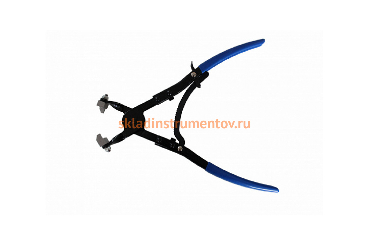 Инструмент оснащен храповиком, который позволяет сэкономить силы при сжатии тугих хомутов.