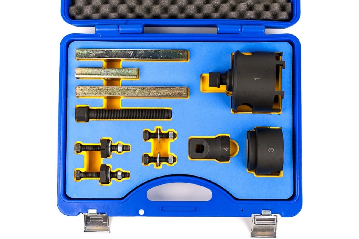 Набор для ремонта АКПП DSG, VW, AUDI AIST 00-00020516 разработан специально для монтажа/демонтажа муфты коробки переключения передач DSG, которая устанавливается на автомобили группы компаний VAG: VW Golf (2004 г.в. - по н.м.), Golf Plus (2005 г.в. - по н.м.) 7-и ступенчатая КПП (code 0AM), Audi A3 (2004 г.в. - по н.м.) 7-и ступенчатая КПП (code 0AM), VW Touareg (2003 г.в. - по н.м.) 6-и ступенчатая КПП (code 08D). Оригинальные номера инструментов: съёмник сцепления VAG T10373, установочный инструмент для выжимного подшипника VAG T10374, инструмент для стопорного кольца VAG T10376, инструмент для приводного вала VAG T10323.