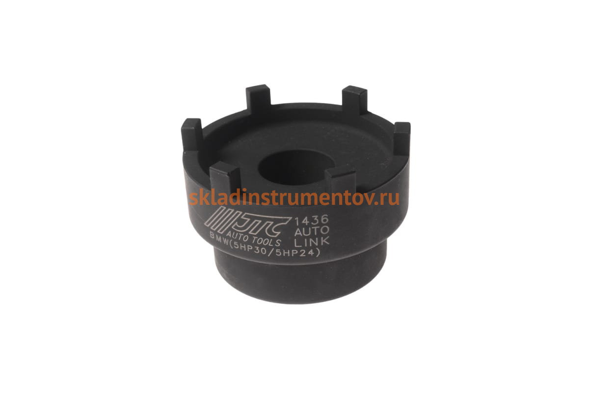 Специальный ключ для коробки передач BMW JTC-1436 представляет собой приспособление, которое используется для затягивания и отворачивания шлицевой гайки на фланце выходного вала коробки передач. Инструмент оснащен размером под ключ 1/2". Ключ предназначен для автомобилей BMW. Внутренний диаметр - 63.5 мм.