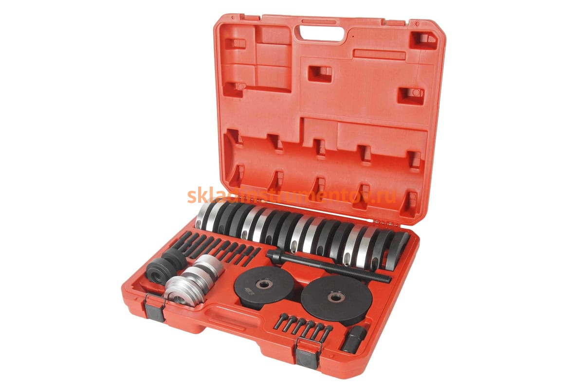 Набор для замены ступичных подшипников VAG JTC 4305 представляет собой комплект универсальных приспособлений, с помощью которых можно быстро и аккуратно осуществить демонтаж и установку необходимых крепежных элементов ходовой части транспорта. Основная область применения данных инструментов - автомобили VW Lupo, Polo, T5 Touareg, Skoda, SEA. Подходят для подшипников внешним диаметром 62, 66, 72 и 85 мм.