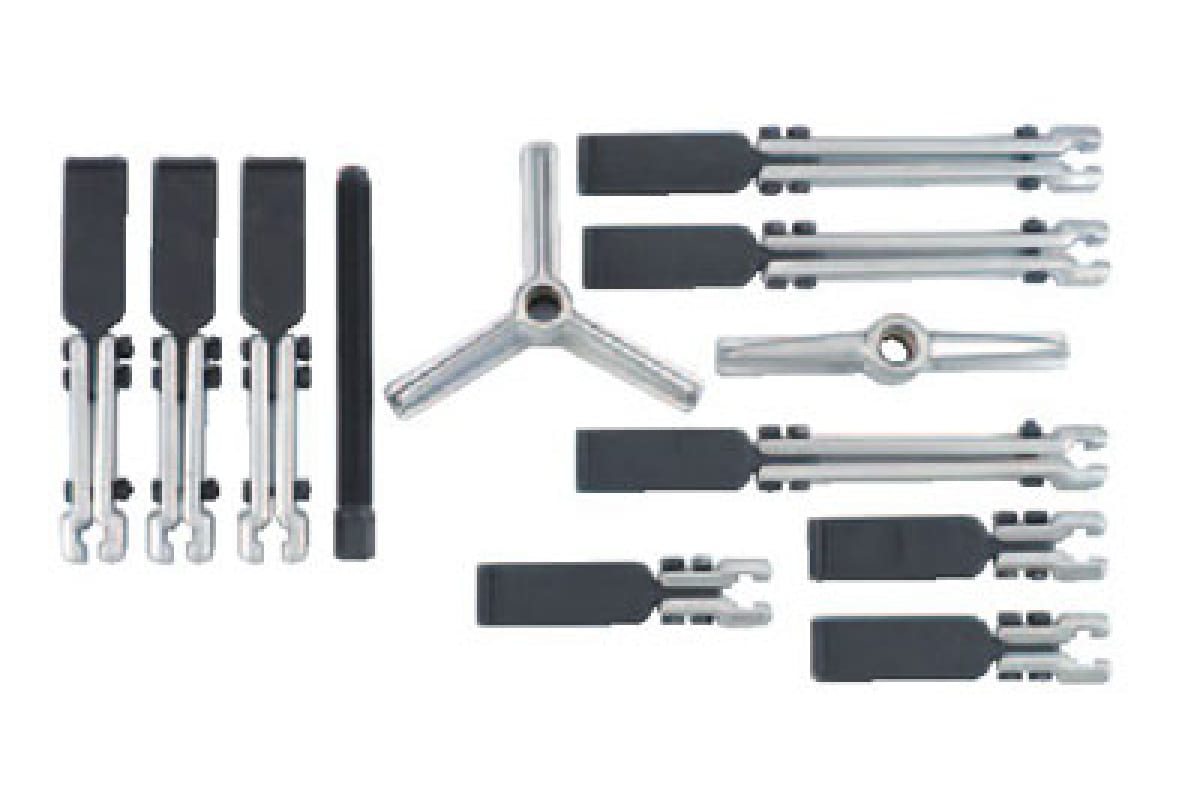 Универсальный переставной двух и трехлапый съёмник подшипников (150, 220, 300 мм) 12 предметов FORCE 66627 представляет собой набор демонтажного инструмента, который предназначается для обслуживания автомобилей различных марок. Все компоненты комплекта изготавливаются из высококачественных материалов, что гарантирует долгий срок службы и устойчивость к износу.