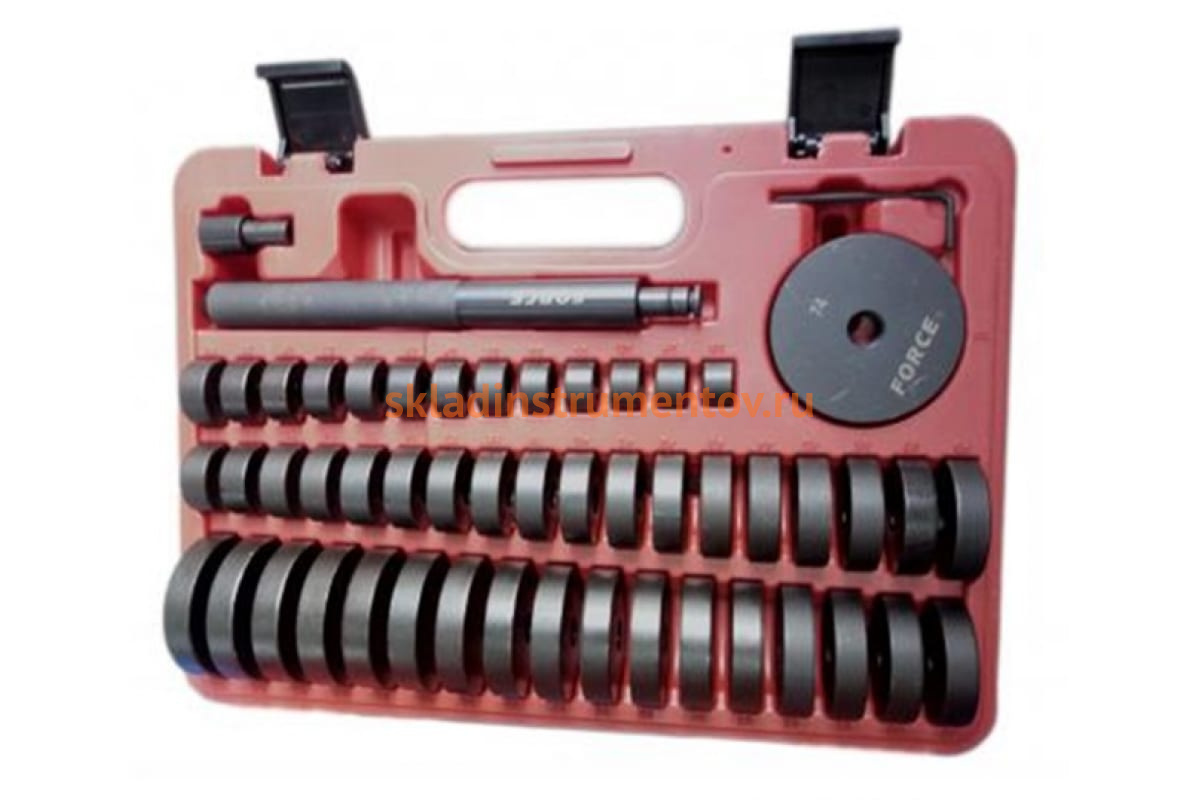 Набор оправок FORCE 52 пр. 952T1 предназначен для работ по демонтажу, запрессовке и установке подшипников, сальников или уплотнений с диаметром от 18 до 74 мм. Комплект поставляется в кейсе из прочной пластмассы для удобного хранения и транспортировки.