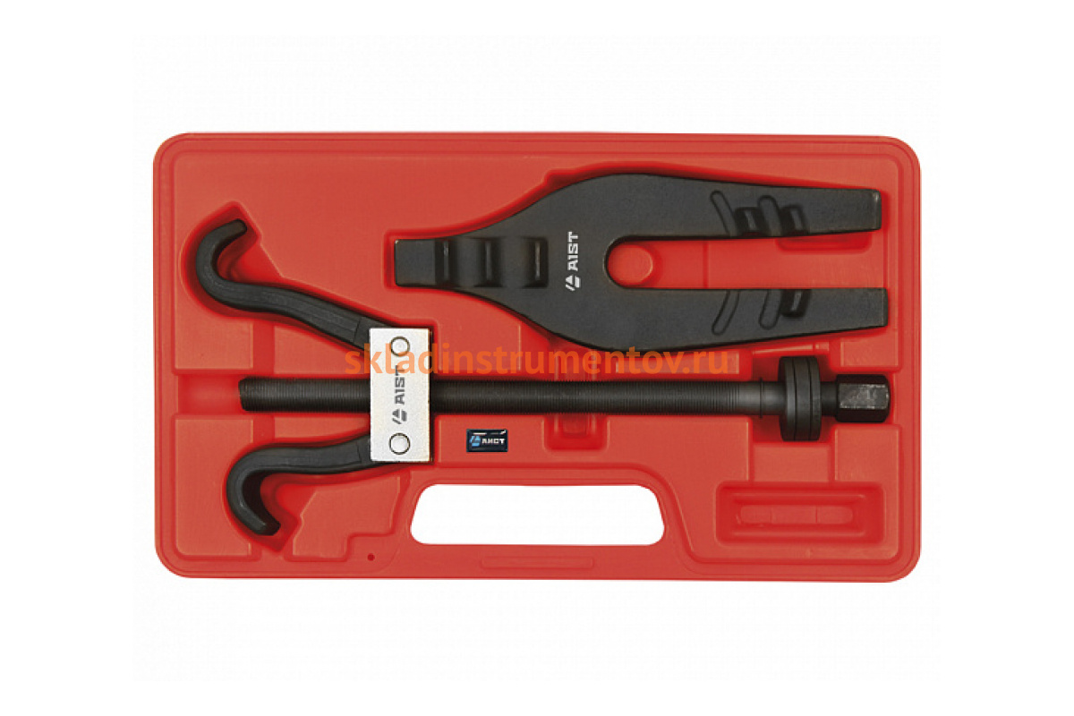 Стяжка съемник пружин амортизаторов 285мм центральный AIST 67213000 00-00008301 выполнена из высокопрочной стали, которая обеспечивает сжатие пружины.