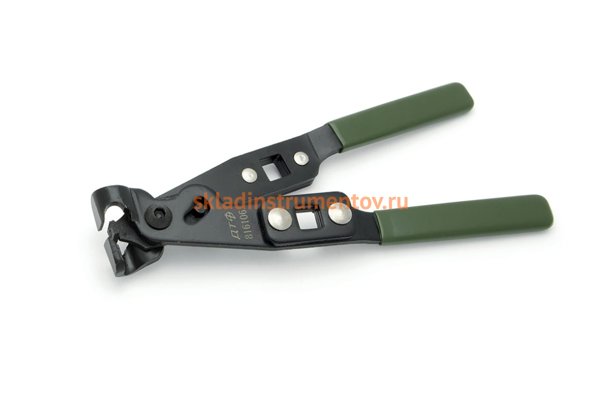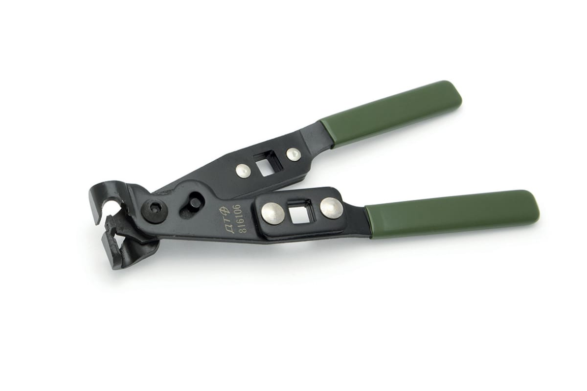 Клещи для хомутов ШРУСа Дело Техники усиленные 816106 изготовлены из стали марки 50. Инструмент с усиленной конструкцией служит для установки ленточных хомутов ШРУСа с ушком. Клещи оснащены рукоятками для удобной работы. Для контроля момента затяжки изделие используется с динамометрическим ключом.