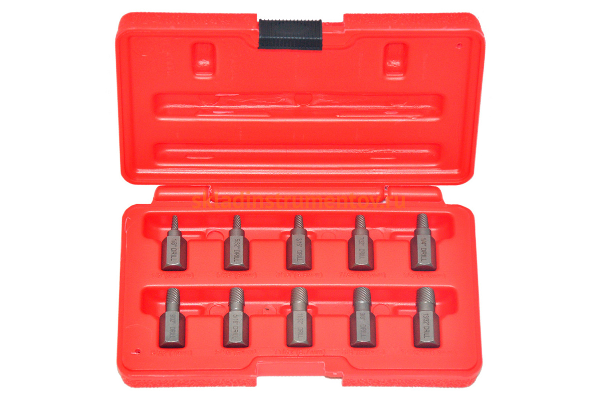 Набор экстракторов 1/8-13/32 10 предметов AV Steel AV-921087 подойдет для извлечения обломанных болтов, шпилек. Экстракторы уложены в кейс на индивидуальные позиции, что облегчает поиск и подбор подходящего инструмента.