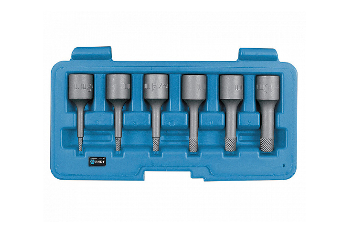 Набор экстракторов 6 предмета AIST 67310406 00-00015717 с посадочным квадратом на 3/8" подойдет для удаления срезанных и сломанных болтов и шпилек.