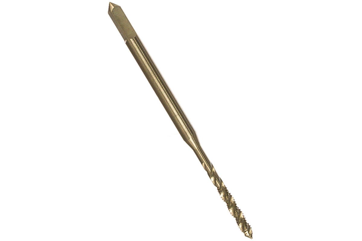 Общая длина метчика 45 мм, длина режущей части 8 мм, диаметр хвостовика 2,8 мм, посадочный квадрат 2,1 мм.