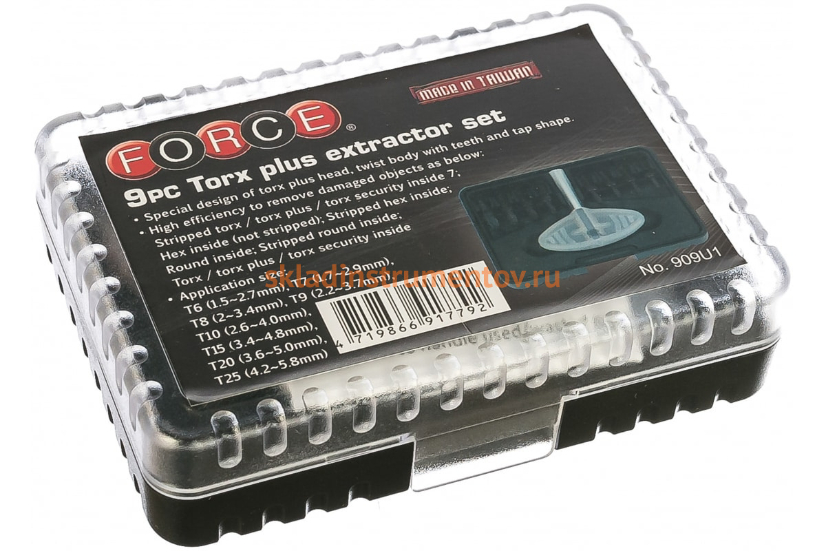 Набор экстракторов для сломанных 6-гранников и TORX болтов 9 предметов FORCE 909U1 позволяет быстро выкрутить сломанные винты.