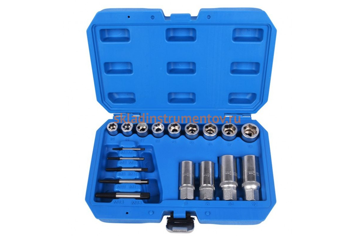 Набор для откручивания заломанных болтов, гаек и шпилек 18 предметов ROCKFORCE RF-918U2 подойдет для обслуживания автомобилей с поврежденным крепежом.