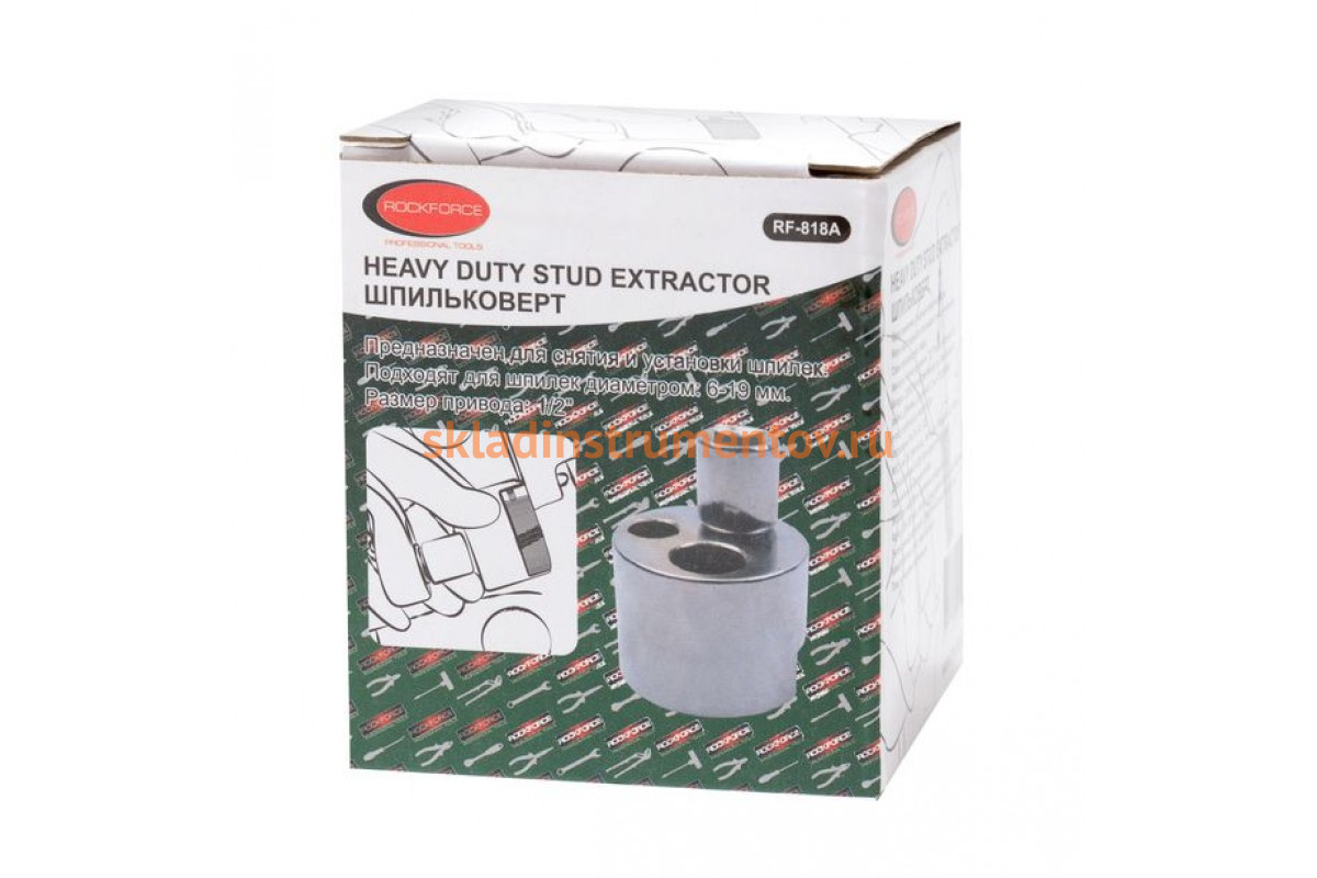 Универсальный шпильковерт Rockforce 1/2" RF-818A применяется для снятия и установки резьбовых шпилек диаметром 6-19 мм.