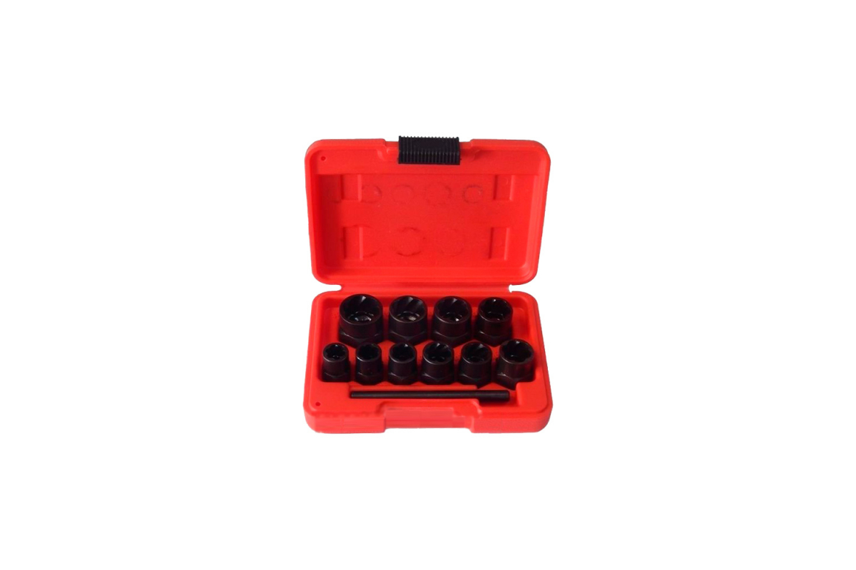 Набор головок-экстракторов коротких 10 предметов и выколотка 9-19мм AV Steel AV-921090 помогает избавиться от сломанного или слизанного крепежа.