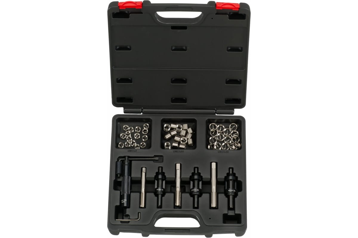 Набор для ремонта свечных гнёзд М10х1.0, М12х1.25, М14х1.25, 56шт FORCE 956G1 предназначается для проведения восстановительных работ с посадочными отверстиями под свечи зажигания. Широкий ассортимент компонентов в наборе быстро и легко отремонтировать поврежденную резьбу.