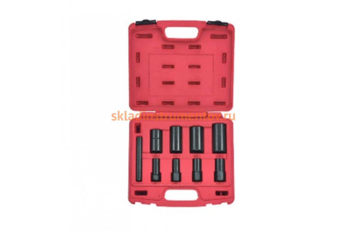 Набор ударных, срывных торцевых головок стопорных колесных гаек FORCE 909T7 подходит для автомобилей марок GM, Ford, Chrysler. Детали изготовлены методом ковки из хром-ванадиевой стали, с последующей термообработкой. Материал прочен, устойчив к коррозии и износу. Обладает длительным сроком эксплуатации. Для удобного хранения и транспортировки все предметы набора помещены в пластиковый кейс.