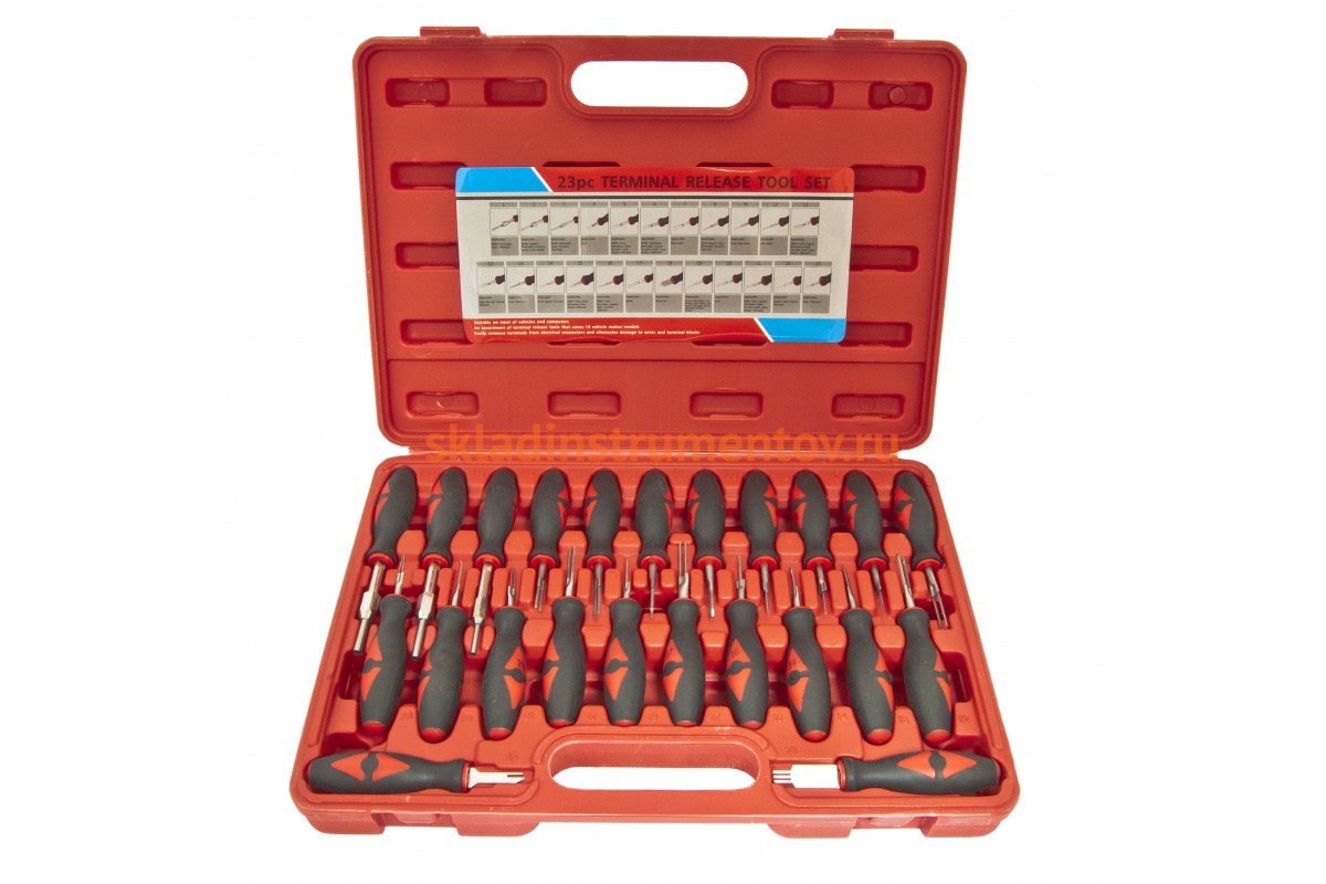 Набор приспособлений для разборки электрических разъемов в кейсе ЭВРИКА 23 предметов ER-86716 предназначен для обслуживания клемм электропроводки без повреждения пластиковых разъемов. Благодаря оптимальной комплектации инструмент подойдет для автомобилей большинства марок. Некоторые из наконечников имеют специальное углубление на кольце, предотвращающее соскальзывание с контакта при выдавливании. Для бережного хранения и удобной транспортировки набор поставляется в пластиковом кейсе.