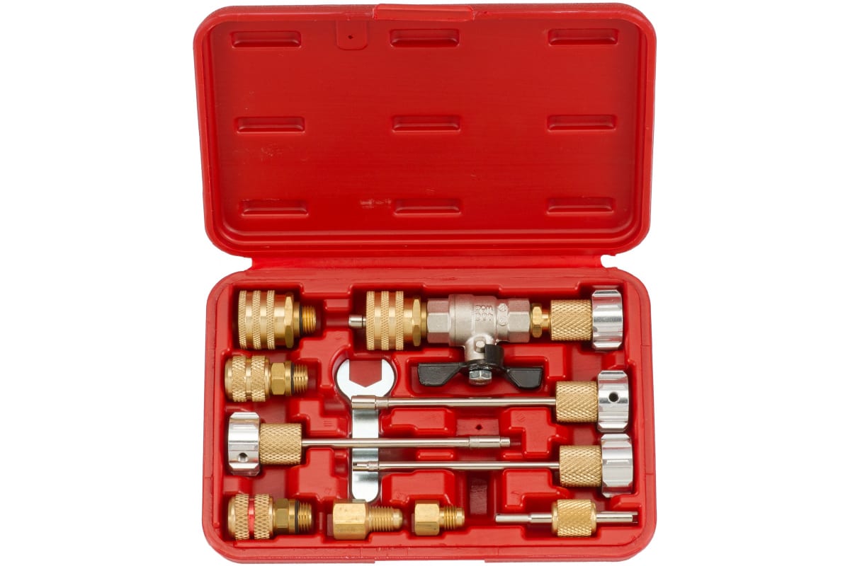 Набор FORCE 911G8 - комплект из одиннадцати специальных присоединительных приспособлений, которые служат для ремонта системы кондиционирования, при этом, не требуя спуска газа. Представленный набор станет надежным помощником для мастера в условиях профессионального обслуживания автомобилей различных марок.