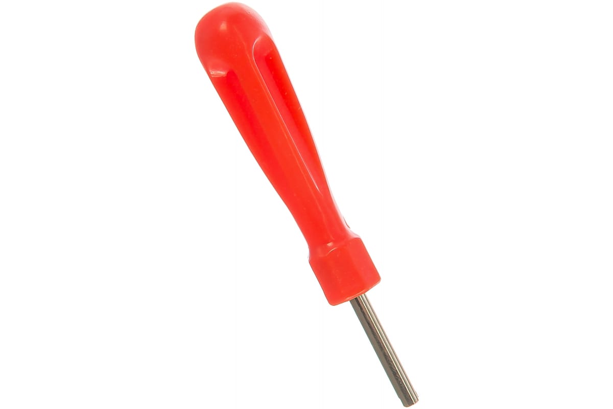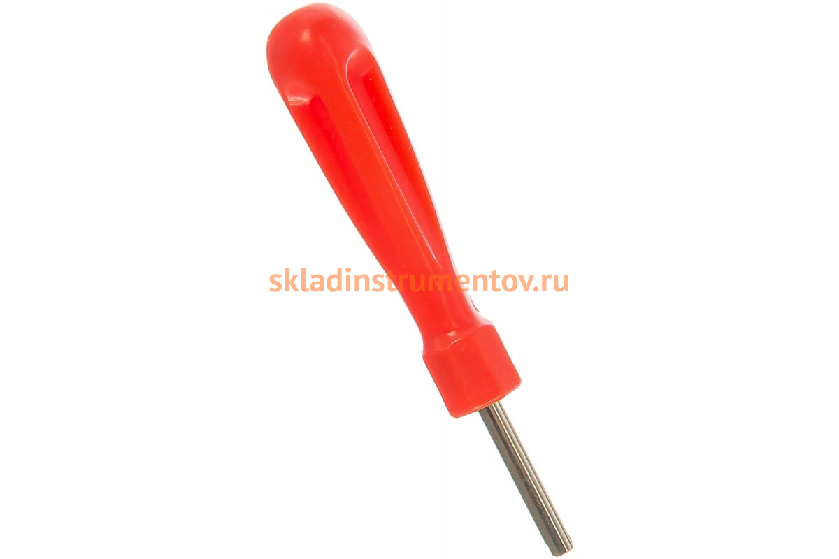 Отвертка для снятия / установки золотников / ниппелей МАСТАК 109-41002 представляет собой специфический инструмент. Небольшие размеры позволяют переносить его без специального оборудования. Удобная рукоятка с упором для пальцев упрощает работу с мелкими деталями. Особая форма поверхности рукоятки снижает скольжение. Диаметр рабочей части составляет 2.75 мм. Длина жала равна 30 мм. Вес - 0.012 кг.