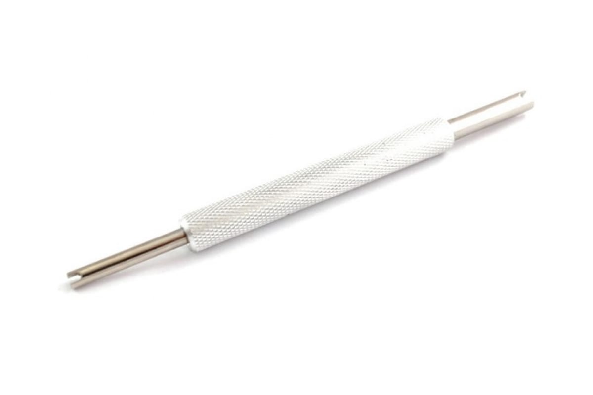 Отвертка для снятия и установки золотников ниппелей МАСТАК 109-41003 используется в автосервисах и на станциях технического обслуживания автомобилей. Изготовлена из прочных материалов и имеет удобную рукоятку с рифленой поверхностью. Диаметр отвертки - 6.3/4.5 мм.