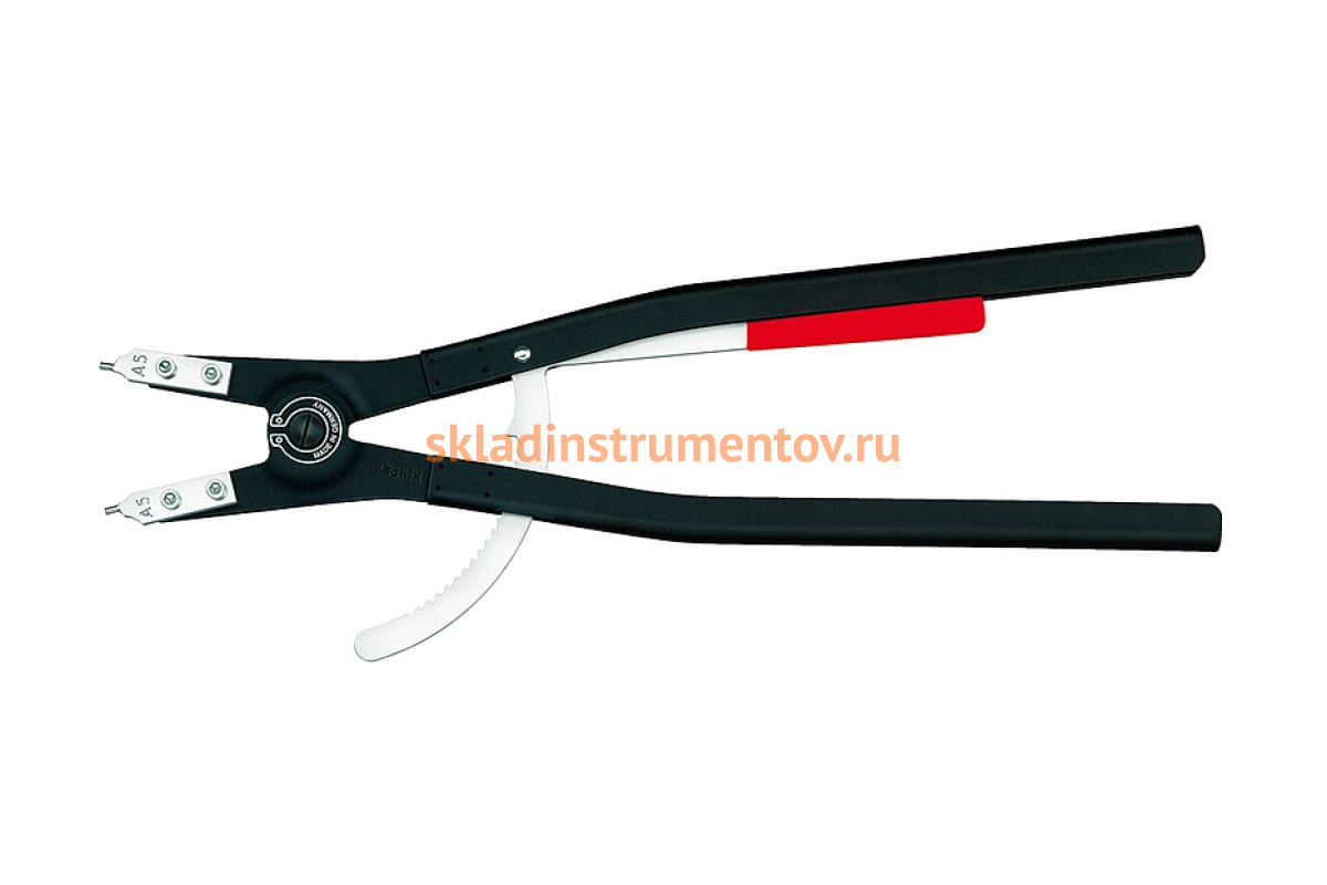 Щипцы для стопорных колец KNIPEX KN-4610A5 оснащены разъемным блокировочным механизмом и сменными наконечниками. Используются для монтажа внешних стопорных колец на валах диаметром 122 - 300 мм. Высокопрочный корпус из катаной стали выдерживает большие механические нагрузки. Черное порошковое покрытие надежно защищает поверхность от коррозии.