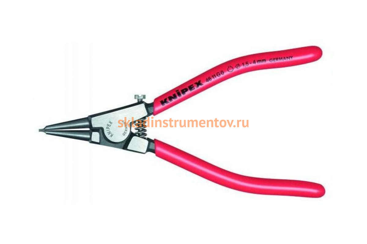 Щипцы для стопорных колец KNIPEX KN-4611G0 предназначены для монтажа фиксирующих колец на валах диаметром 1.5 - 4 мм. Рукоятки из нескользящего пластика удобно лежат в руке. Регулируемый ограничительный винт предохраняет от излишнего сжатия. Корпус и концы клещей выполнены из хром-ванадиевой инструментальной стали, что значительно увеличивает износостойкость инструмента.