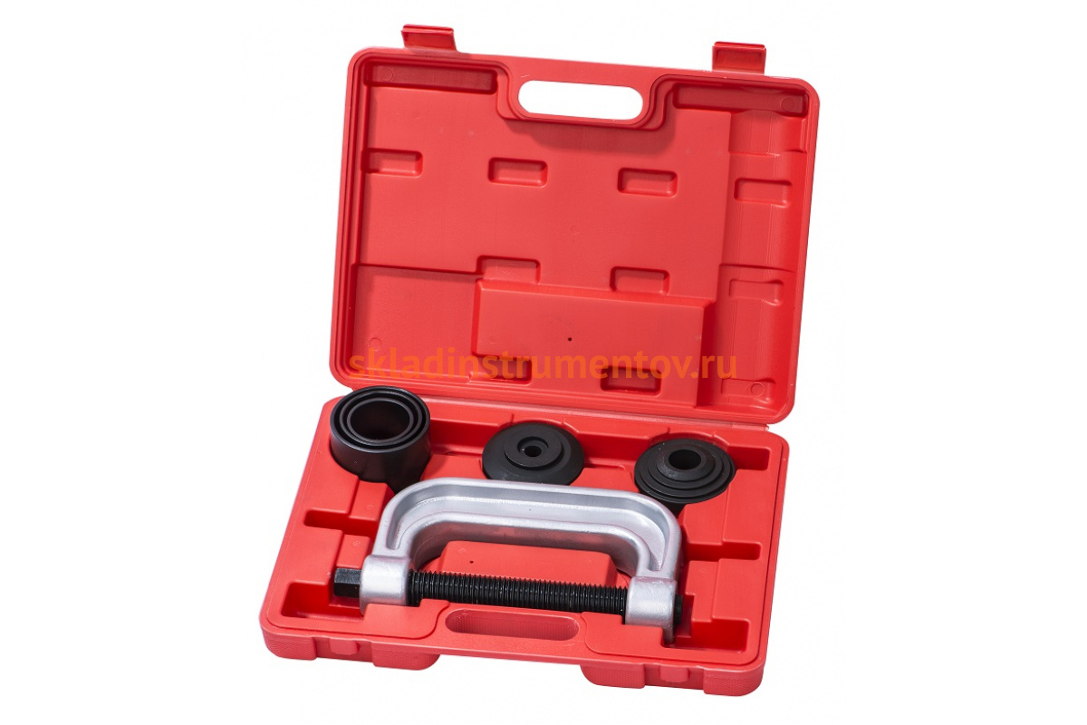 Съемник шаровых опор AE&T 3-в-1 TA-B1090 предназначен для быстрого демонтажа шаровых шарниров, крестовин карданов и опорных пальцев тормозных колодок. Инструмент используют в ремонтных мастерских во время технического обслуживания грузовых автомобилей различных марок. Комплект поставляется в прочном пластиковом кейсе с ручкой и защелками для компактного хранения и удобной переноски.