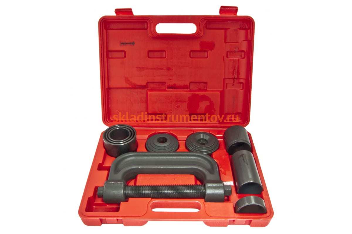 Съемник сайлентблоков и подшипников с набором оправок 9 предмета, в кейсе ЭВРИКА ER-86804