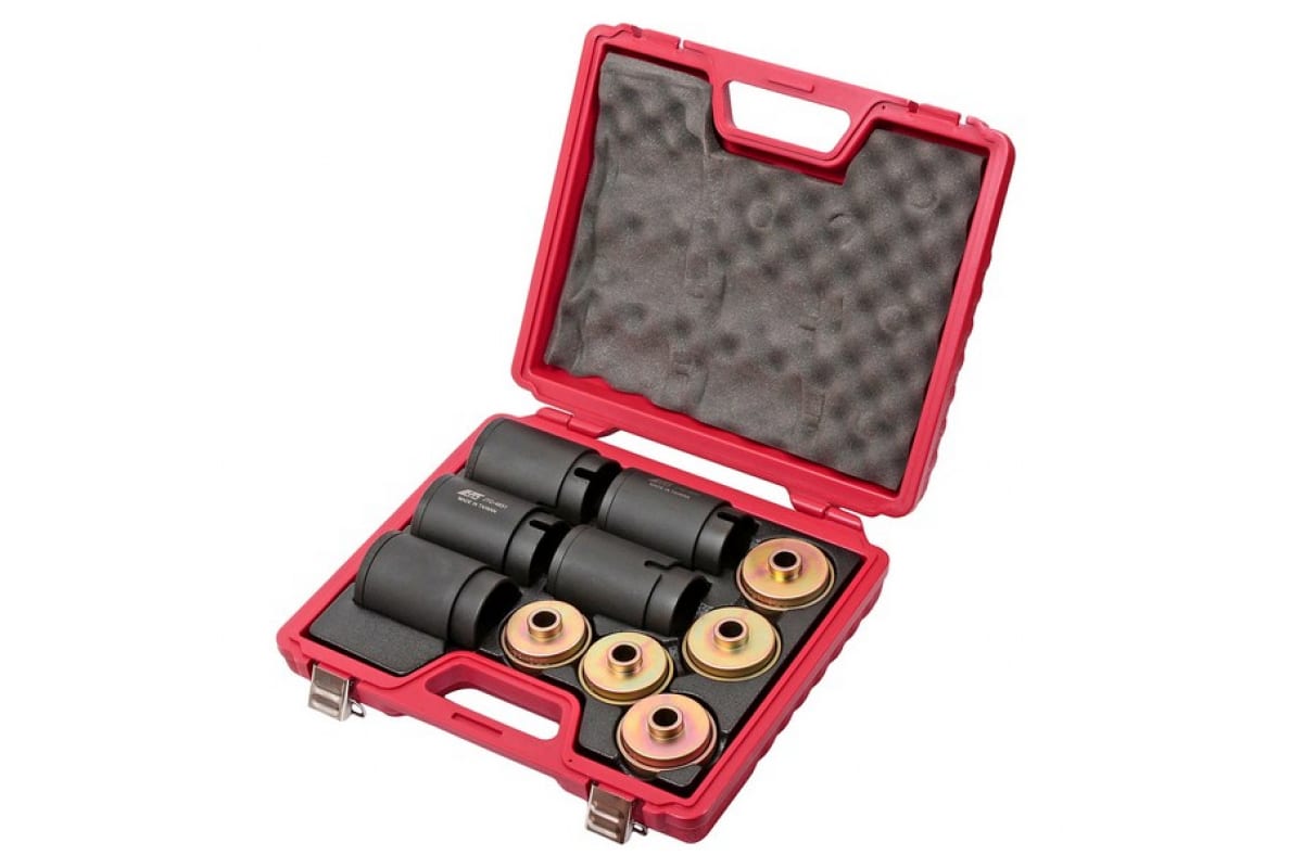 Набор съемников сайлентблоков под гидравлический привод JTC 4831 популярен в крупных, а также в небольших мастерских по ремонту и обслуживанию автомобилей. С помощью данных приспособлений любой автомеханик - как опытный, так и начинающий - смогут быстро и без повреждений осуществить демонтаж неразъемных вулканизированных соединений. Инструменты разработаны для совместного применения с гидравлическим ручным насосом JTC HB600, который приобретается отдельно. В комплекте предусмотрено 10 типоразмеров съемников - внутренний диаметр от 62 до 80 мм, с шагом в 2 мм, по 2 изделия каждого размера. Поставляется в эргономичном кейсе, оснащенном транспортировочной рукояткой и специальными замками-защелками.