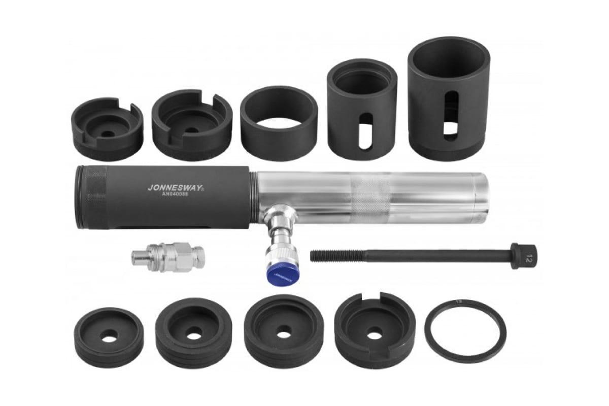 Приспособление с гидроприводом для замены сайлентблоков подвески BMW Е32,Е34,Е39,Е60,Е65,Е66 Jonnesway AN040088 49448 служит для демонтажа и установки резинометаллических деталей элементов подвески автомобилей марки BMW Е32, Е34, Е39, Е60, Е65, Е66. Устрйоство применяется в сочетании с ручным гидравлическим насосом.
