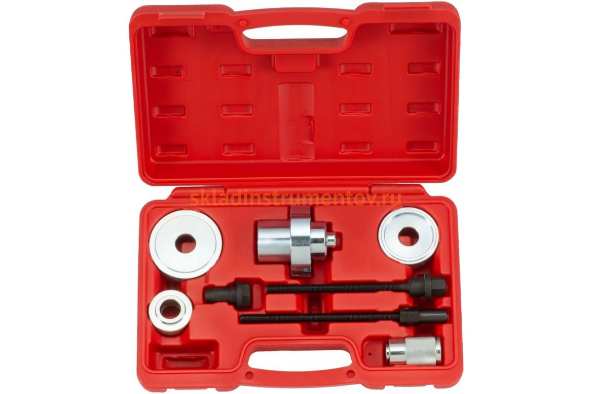 Набор VW FORCE 907T6 - комплект инструментов для проведения монтажно-демонтажных работ с сайлентблоками переднего рычага без необходимости снятия с автомобиля. Представленный набор предназначен для обслуживания автомобилей марки Фольскваген. Все компоненты удобно упакованы в переносной кейс.