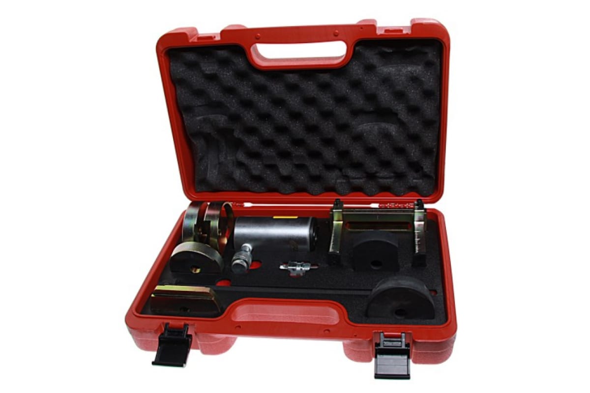 Набор инструментов для демонтажа сайлентблоков заднего подрамника BMW F-series JTC 4442 используется в автомастерской или на станциях технического обслуживания автомобилей. Все составляющие набора отличаются высокой прочностью и устойчивостью к механическим воздействиям. Благодаря кейсу обеспечивается удобство транспортировки. Габариты кейса составляют 48х35х25 см.