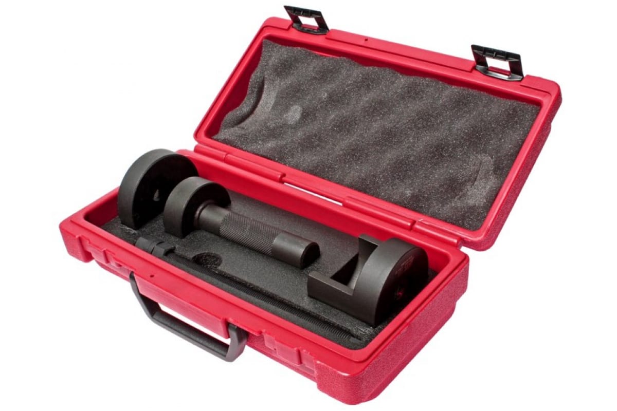 Набор инструментов для демонтажа сайлент-блоков подрамника TOYOTA Altis JTC 4164 поставляется в качественном переносном кейсе с мягкими вставками, который препятствует повреждению комплектующих при транспортировке.