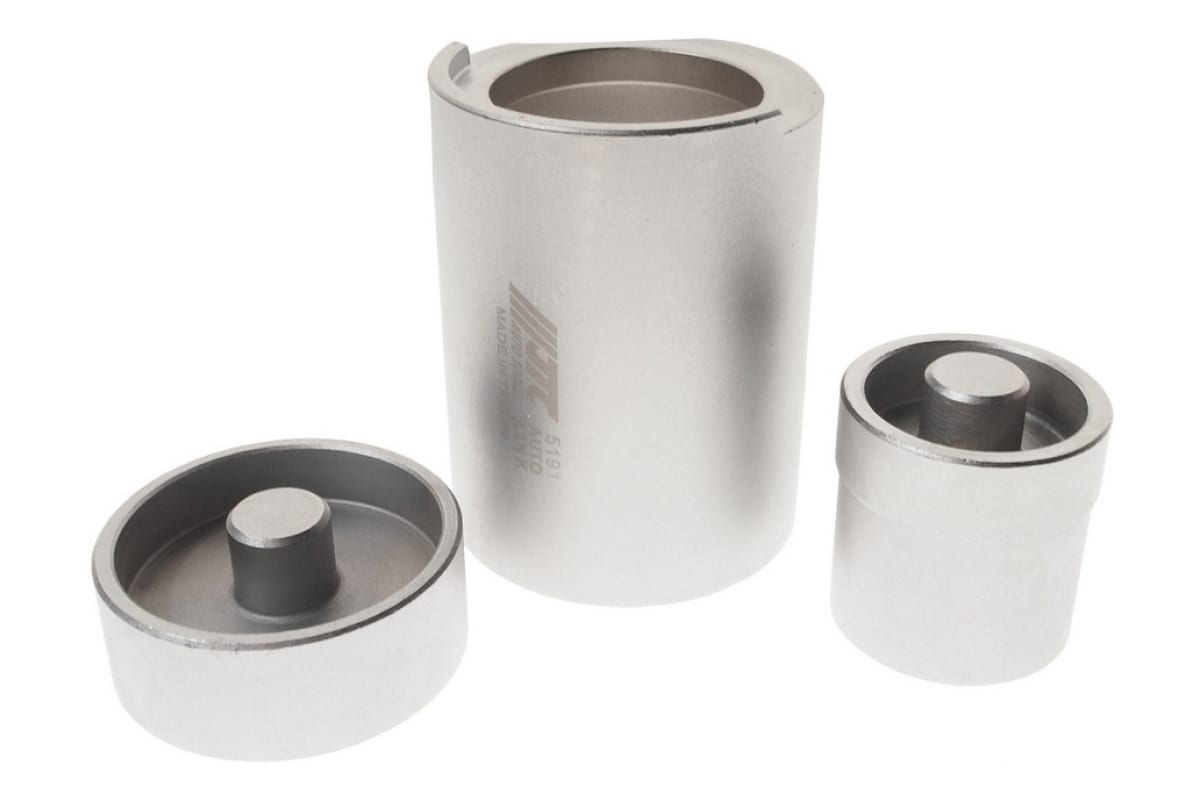 Набор приспособлений JTC-5191 - комплект монтажно/демонтажных инструментов для работы с сайлентблоками рамы у автомобилей ISUZU RT50 (пикап). Подходит для совместного использования с гидравлическим прессом. Оригинальные номера (IM): 5-8840-2309-0, 5-8840-2309-2, 5-8840-2309-3.