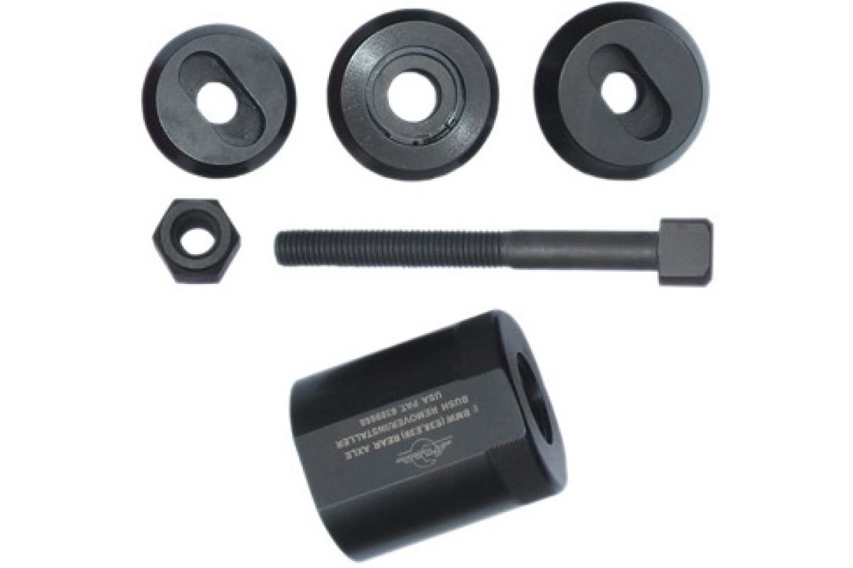 Набор для монтажа и демонтажа сайлентблоков на BMW E38, E39, E60, E65, E66 AIST 67261505/67261050-X4 используется для обслуживания оси двуплечего рычага на корпусе подшипника ступицы колеса задней подвески у автомобилей BMW (E38, E39, E60, E65, E66). При регулярном смазывании силового винта приспособления прослужат более долгий срок.