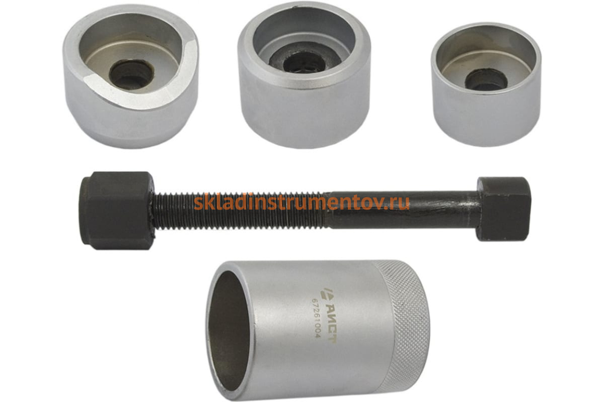 Набор для монтажа и демонтажа сайлентблоков Mercedes W140, W201, W202, W124, W129, W210 AIST 00-00008050 - комплект инструментов для замены сайлентблоков оси двуплечего рычага на корпусе подшипника ступицы колеса задней подвески у автомобилей марки MERCEDES BENZ (W:140, 201, 202, 124, 129, 210).