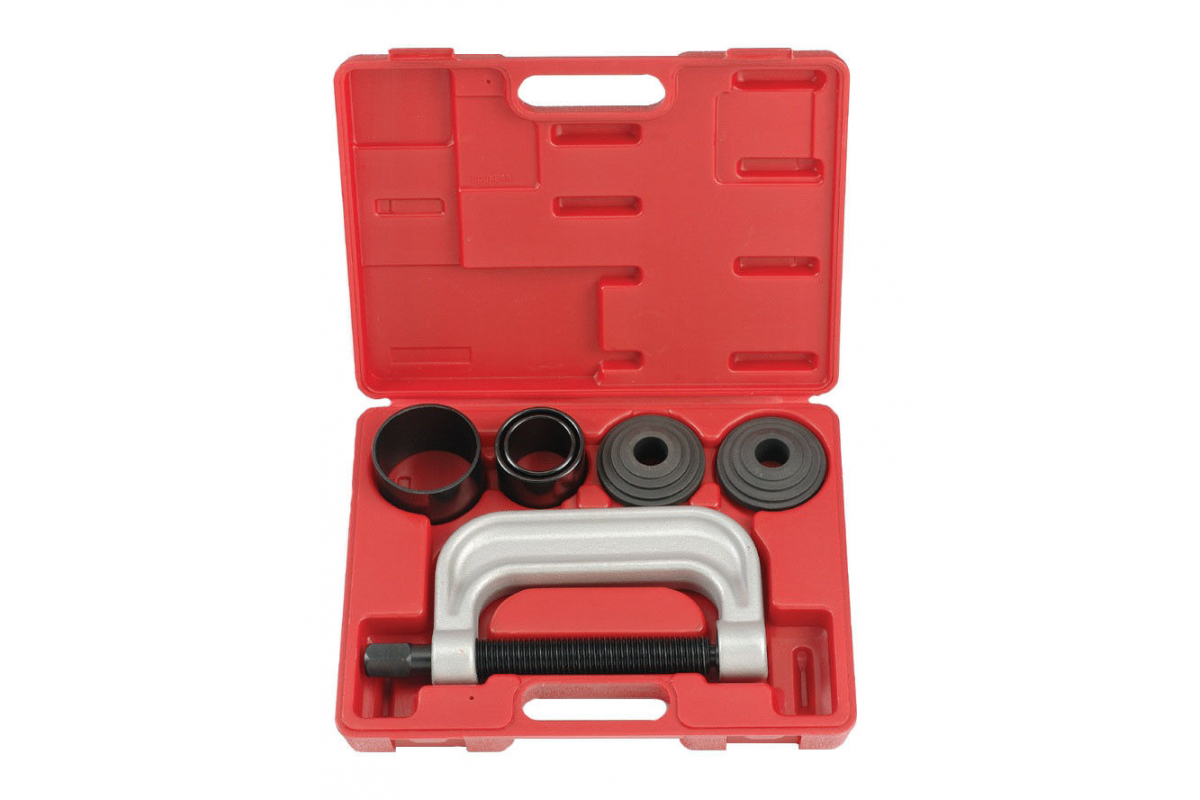 Набор С-образных струбцин для замены шаровых опор FORCE 906T4 состоит из шести предметов. Позволяет надежно зафиксировать деталь для дальнейшей замены.