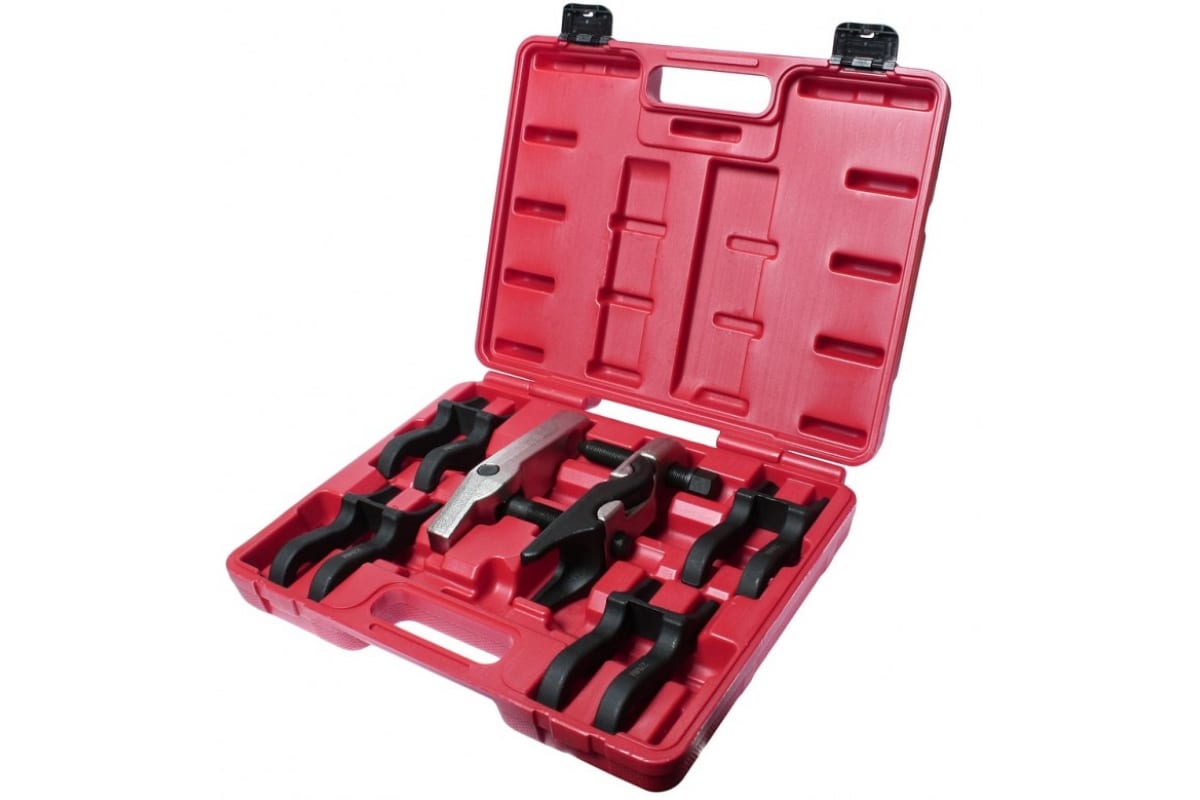 Набор съёмников шаровых опор, 6 предметов МАСТАК 100-57006C включает в себя необходимое оборудование. Инструменты обладают хромированным и оксидированным покрытием. Длина регулировочного винта составляет 100 мм, длина рычага - 125 мм. Набор поставляется в практичном кейсе с ручкой и замками.