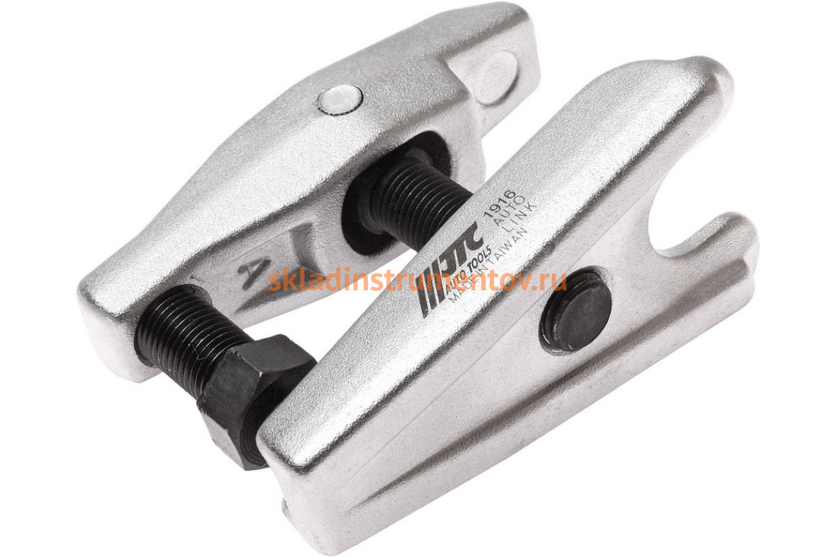 Универсальный съемник JTC-1916 используется на профессиональных станциях технического обслуживания автомобилей для демонтажа шаровых опор, наконечников рулевой тяги, стабилизатора поперечной устойчивости и др. Диаметр соответствует 22 мм, а максимальный вылет - 62 мм.