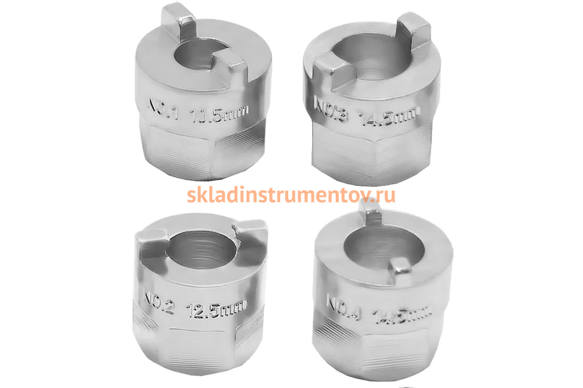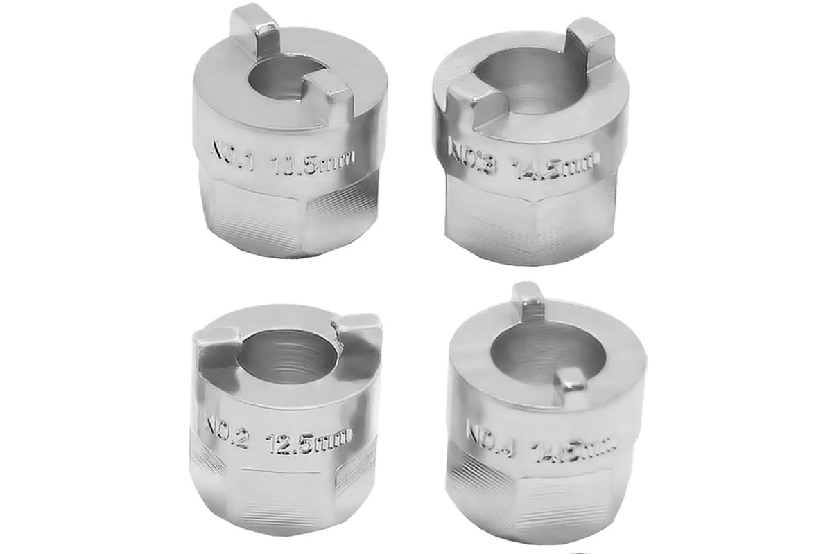 Набор крончатых головок для разбора стойки VW Golf/Polo/Passat, Audi 80, 4шт AIST 00-00006004 состоит из специальных приспособлений, служащих для ослабления и прочной затяжки крепежной гайки штока амортизатора. Используется для обслуживания автомобилей марки Ауди и Фольксваген.