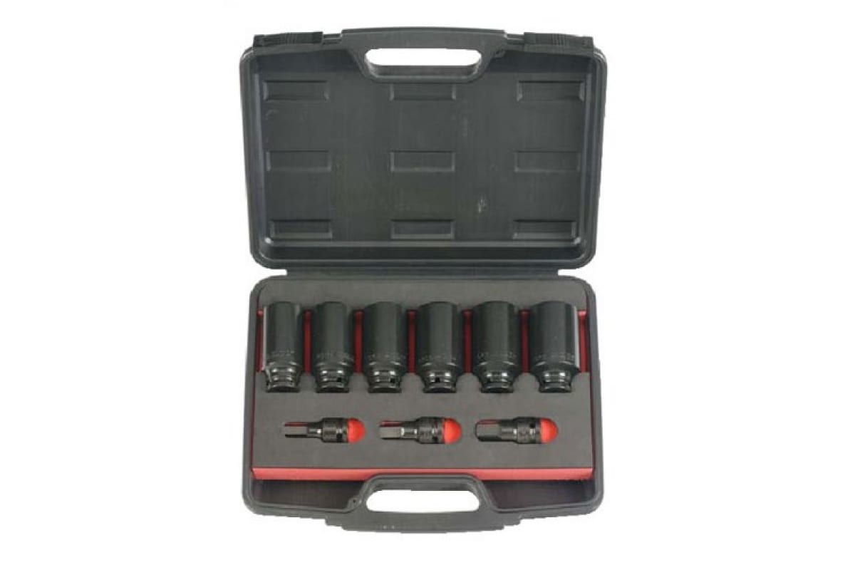 Набор ударных 6-ти гранных головок и головок-бит FORCE 40912 предназначен для монтажа/демонтажа ступичных гаек. В наборе 9 предметов.