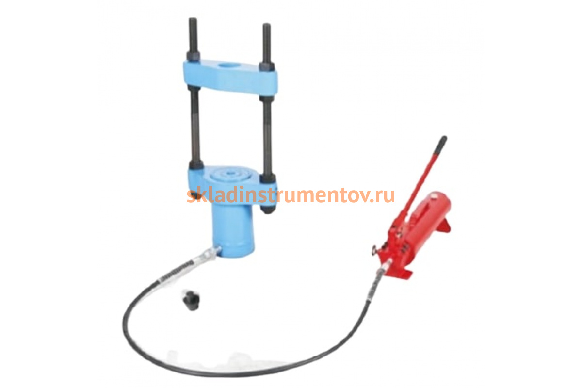 Гидравлический съемник-выпрессовщик шкворней грузовых авто ROCKFORCE RF-R1339 оборудован выносным насосом и комплектом надставок, подходит для использования на автомобилях весом до 75 тонн.