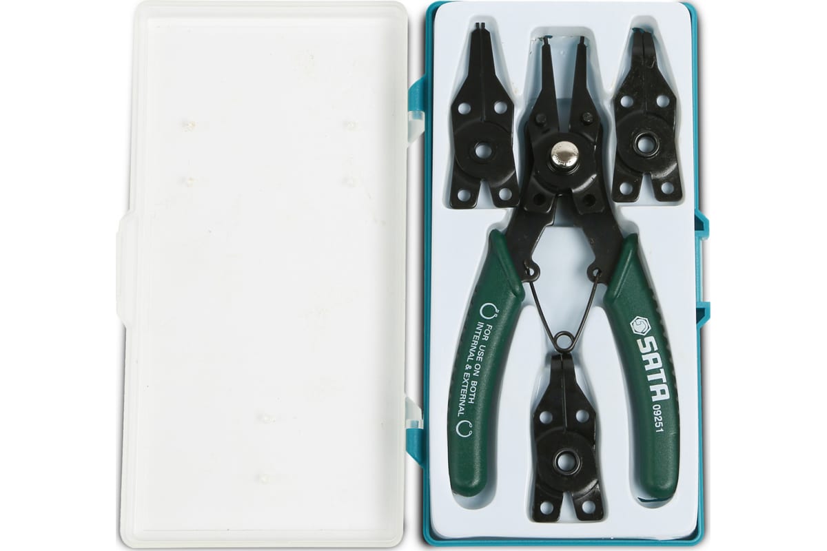 Съемник стопорных колец с набором наконечников SATA 09251 используется для обслуживания автомобильного транспорта. В комплекте представлено несколько сменных насадок, которые обеспечивает возможность демонтажа и установки стопорных колец как внутренних, так и внешних. Шарнирные рукоятки очень удобны в обхвате, не скользят в ладони мастера. Для удобства хранения и транспортировки набора в целостности предусмотрен футляр с крышкой.